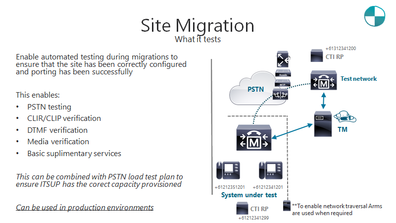 The remote allows Testmate to orchestrate the calls for both PSTN load test and Site migration
